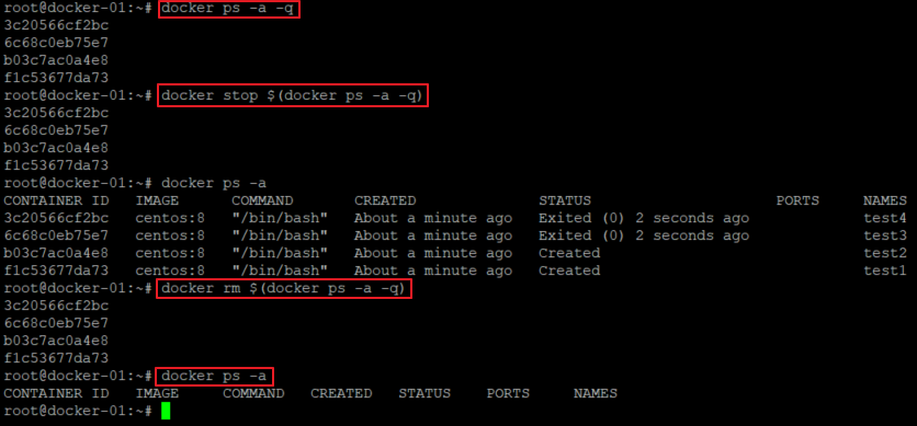 # docker rm $(docker ps -a -q)