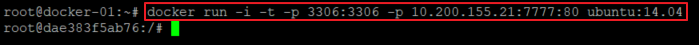 # docker run -i -t -p 3306:3306 -p 10.200.155.21:7777:80 ubuntu:14.04