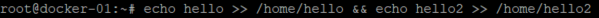 # echo hello >> /home/hello && echo hello2 >> /home/hello2