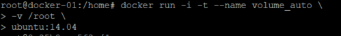 # docker run -i -t --name volume_auto -v /root ubuntu:14.04