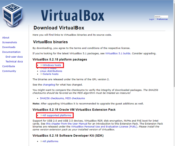 1. VirtualBox 5.2.18 platform packages - Windows hosts
