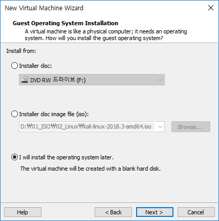 아까 넘긴 ISO파일을 이제 넣어 줄 것이다.