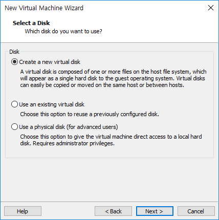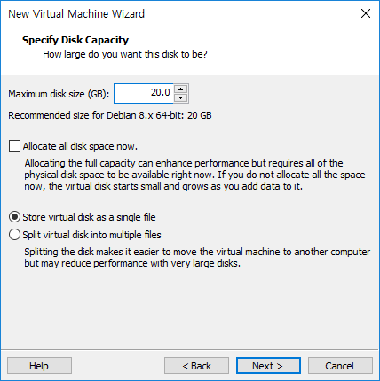 만약 Allocate all dis space now. 를 체크하게 되면 '고정 할당' 으로 실제PC의 디스크 공간을 설정 해 준 만큼