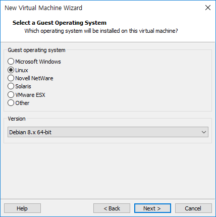 Debian 8.x 64-bit 버전을 설정 해 준다.